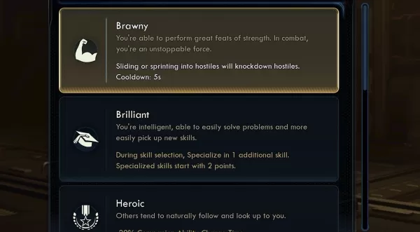 "Like Fallout, we let players trade drawbacks for bonuses," said Koenig. The sequel expands this through Positive/Negative Traits requiring careful balancing—select Brawny (sprint-knockdowns) by accepting Sickly (reduced health) or Dumb (locked Skills).