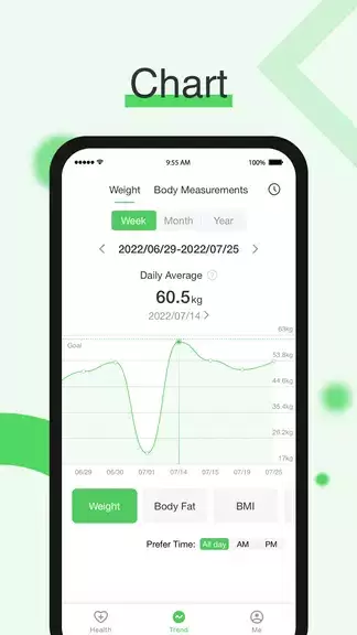 使用arboleaf智能體重秤和應用程序輕鬆監控您的健康和健身目標。 在一個方便的位置跟蹤體重、體脂、BMI、肌肉質量等。 該應用程序與流行的健身平台無縫集成,允許跨多個設備進行全麵的數據跟蹤。 該秤專為家庭設計,支持多個用戶配置文件,確保每個成員的個性化跟蹤和目標設定。 您的隱私受到保護——隻有您才能訪問您的個人數據。 通過arboleaf保持動力並實現更健康的生活方式。訪問 www.arboleaf.com 了解更多。