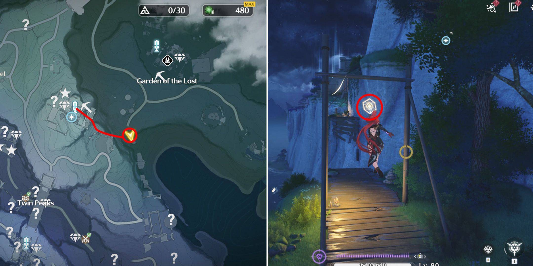 雙子峰北部航路點東南部。跳下懸崖,滑向斷橋。
