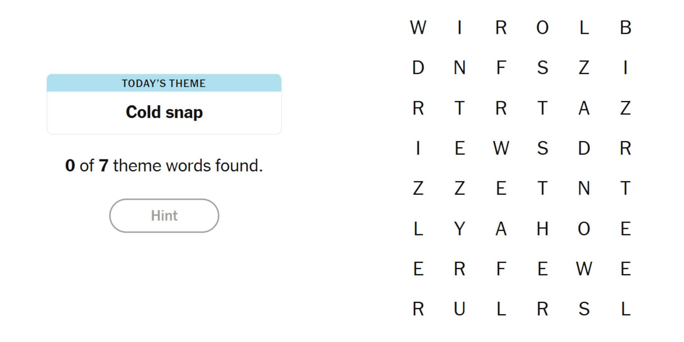本指南为Strands Puzzle#308(2025年1月5日)提供帮助,主题为“冷扣”。